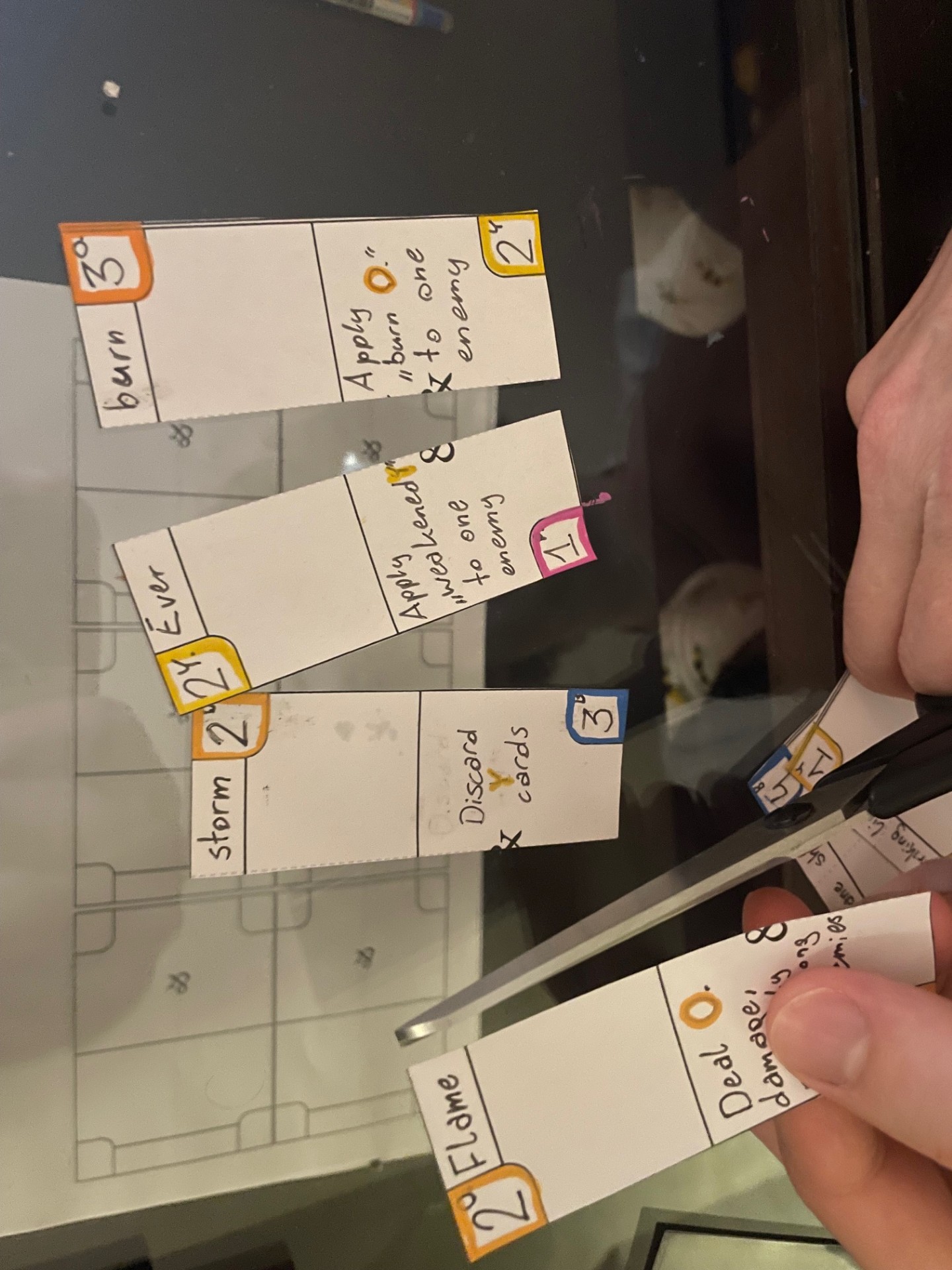 ... that enemies directly need to interact with the main mechanic of cutting cards. The slime and frog enemy in the first playtest did, and it encouraged the player to snip & glue cards in ways that would otherwise be inefficient. I'll have to make sure many enemies do interact with it, but not all - we will need to have some basic enemies as well.